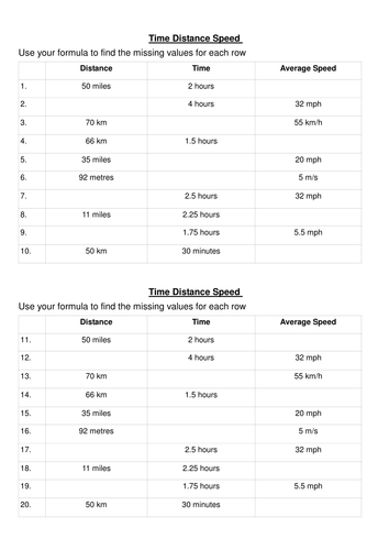 These speed, distance and time worksheets give your CfE Second Level pupils practice in solving more advanced problems. Did the coach break the speed limit? Worksheet will open in a new window. or rate (speed) times time equals distance.